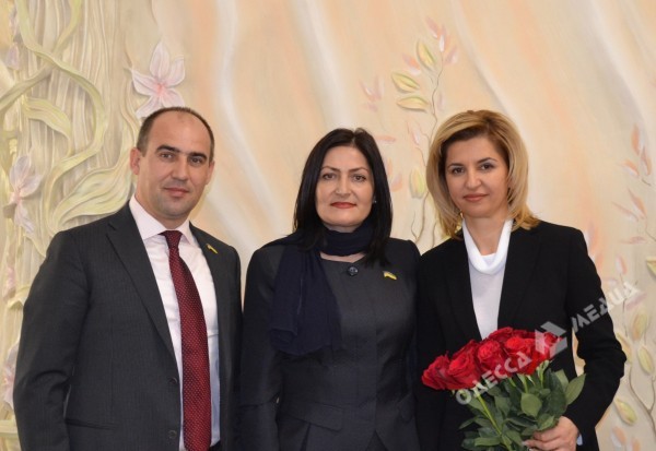 От имени Украины нового башкана поздравили депутаты Одесского областного совета Юрий Димчогло и Мария Попова. Они вручили Ирине Влах символ власти, сувенир-булаву, а также уникальные книги о национальностях, населяющих украинский Буджак.