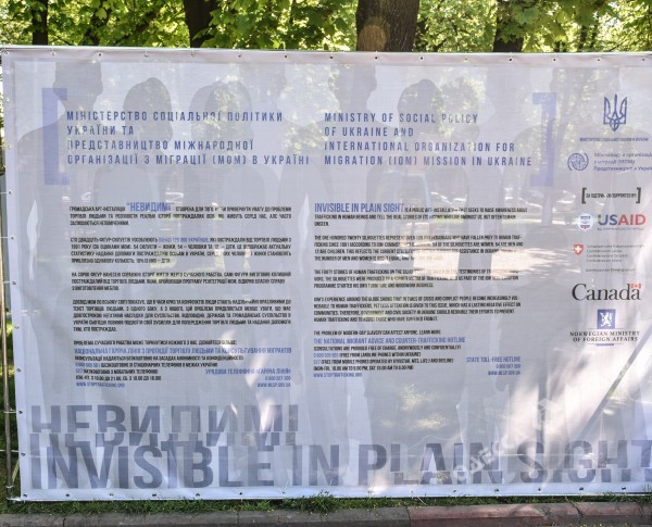 Арт-инсталляция «Невидимые» – это 120 фигур-силуэтов женщин, мужчин и детей, олицетворяющих 120 тысяч украинцев, пострадавших от торговли людьми в Украине с 1991 года – по данным Представительства МОМ в Украине. На 12 фигурах написаны настоящие истории жертв современного рабства.
