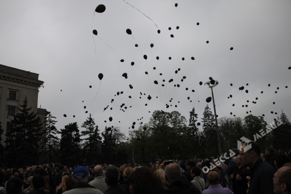 После его слов неравнодушные одесситы и родственники погибших прочитали свои стихотворения. Многие, как мужчины, так и женщины, не смогли сдержать слез. В память об убитых они запустили в небо воздушные шары. Пришедшие, после того как все желающие выступили, не расходились и спокойно общались друг с другом.