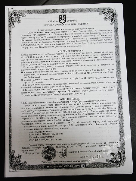 Отметим, представитель застройщика предоставила журналистам копии всех разрешительных документов от органов государственной власти. В том числе договор аренды земельного участка от Одесского городского совета, а также градостроительные условия и ограничения застройки земельного участка от управления архитектуры и градостроительства.