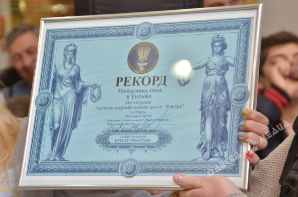 Ее длина составила 30 метров 20 сантиметров. Замеры были официально внесены в Национальный реестр рекордов Украины, после чего все желающие смогли отведать знаменитое итальянское блюдо.
