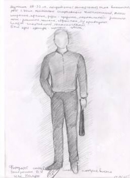 Фоторобот 1-го преступника. Приметы: на вид 30-35 лет, внешне похож на болгарина или молдаванина, рост 175-180 см, плотного спортивно-атлетического телосложения. Был одет в черную спортивную куртку, черные брюки.