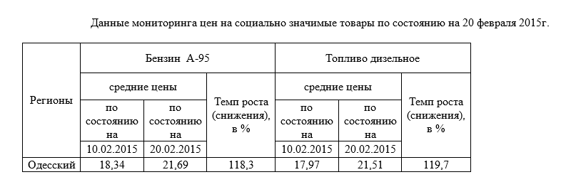 Данные мониторинга цен на социально значимые товары по состоянию на 20 февраля 2015г.