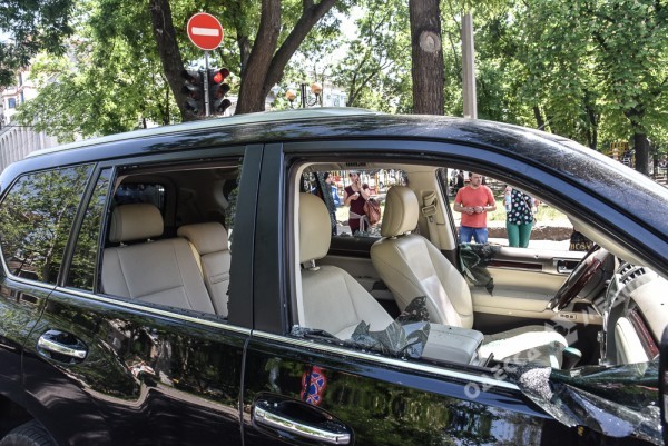 На пересечении Александровского проспекта и ул. Жуковского сегодня, 25 мая, несколько часов назад совершено нападение на черный джип, передает корреспондент ИА «Одесса-медиа» с места события.
