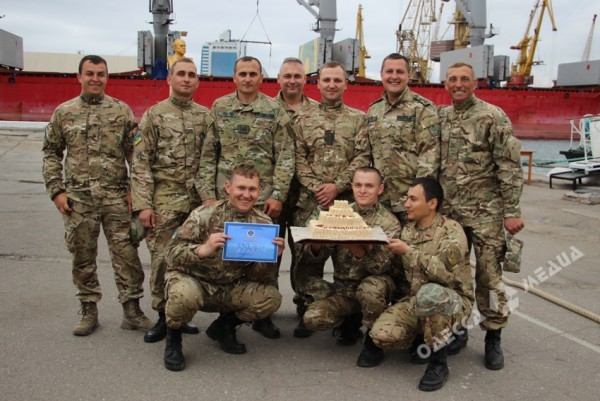 Как рассказала помощник командира Одесского отряда морской охраны Наталья Гуменюк, пограничников приехали поздравить ученики из подшефных школ. Детские коллективы из родного города одного из погибших моряков подготовили концертные номера и рисунки. Их пригласила мать погибшего пограничника Колесниченко – Евгения Альбертовна, у которой сегодня юбилей.