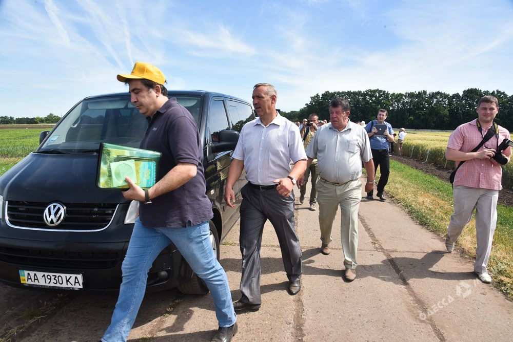 Губернатор Одесской области Михаил Саакашвили посетил исследовательские поля селекционно-генетического института. Он вместе с командой прошелся по территории, со знанием дела осмотрел сорта пшеницы и выслушал рассказы о достижениях местного сельского хозяйства.