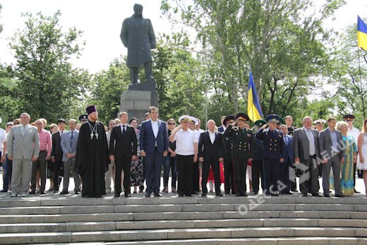 В Одессе состоялась торжественная церемония по случаю 19-й годовщины со дня принятия Конституции Украины. К памятнику Тарасу Шевченко в одноименном парке пришли первые лица города и области, представители Вооруженных сил Украины, духовенства, а также простые одесситы.