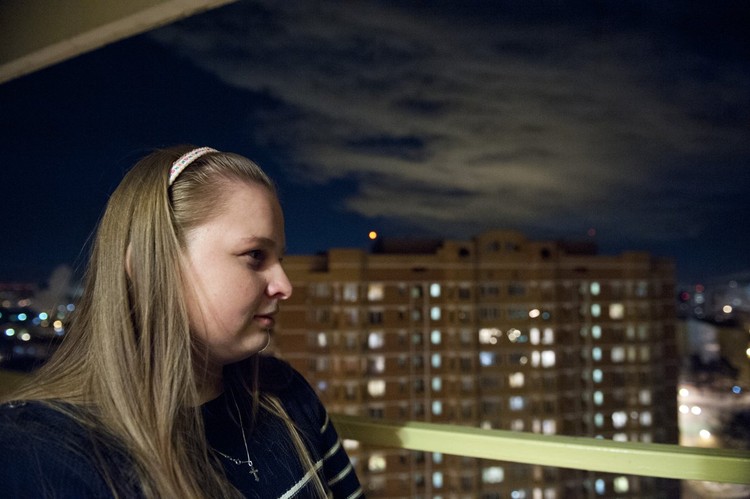 Елена Гасюкова, 24 года, студентка Высшей Школы Экономики, читает объявление в лифте: «Генеральная уборка по субботам и воскресеньям».