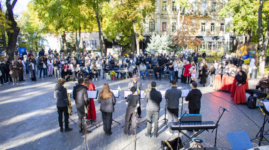 У Міському саду Одеси відбувся патріотичний захід «Вечір подяки Захисникам України», організований Радою Церков і релігійних організацій Одещини спільно з КП «Парки Одеси» до Дня української писемності та мови.