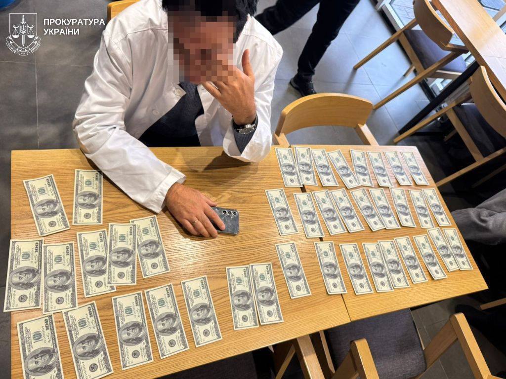 Під час особистої зустрічі медик отримав частину неправомірних коштів – 4000 доларів США. Одразу після передачі грошей його затримали правоохоронці.