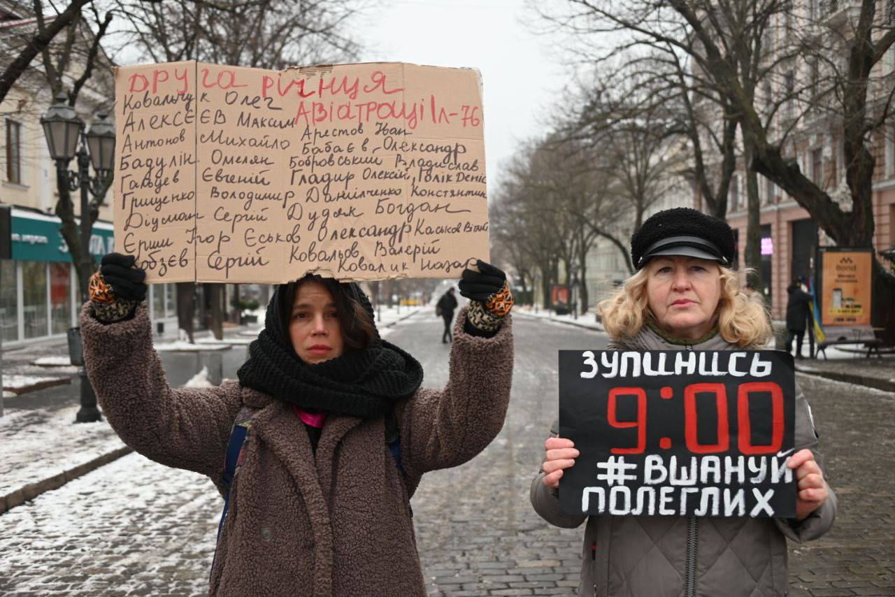 В Одесі на Дерибасівській/Преображенській та на Давида Ойстраха/Князя Володимира Великого відбулась акція «Вшануй. 9:00» присвячена другій річниці авіатрощі ІЛ-76, повідомляють місцеві тг-канали.