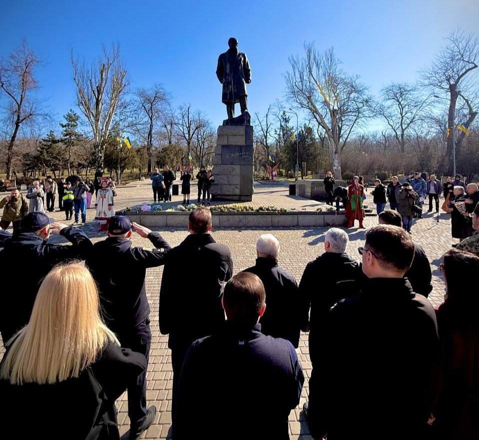 Сьогодні українці відзначають 212-у річницю від дня народження славетного кобзаря, поета та художника України — Тараса Григоровича Шевченка. З цієї нагоди в Одесі відбулось урочисте покладання квітів до пам’ятника кобзарю в однойменному парку.