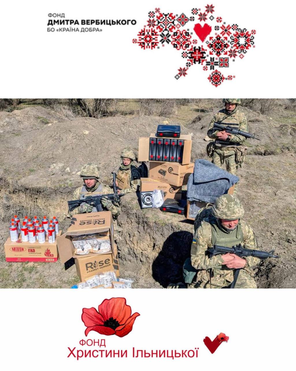 Фонд Дмитра Вербицького «Країна добра» та Фонд Христини Ільницької спрямували на передову для ЗСУ допомогу, яка зігріває не лише тіло, а й душу.