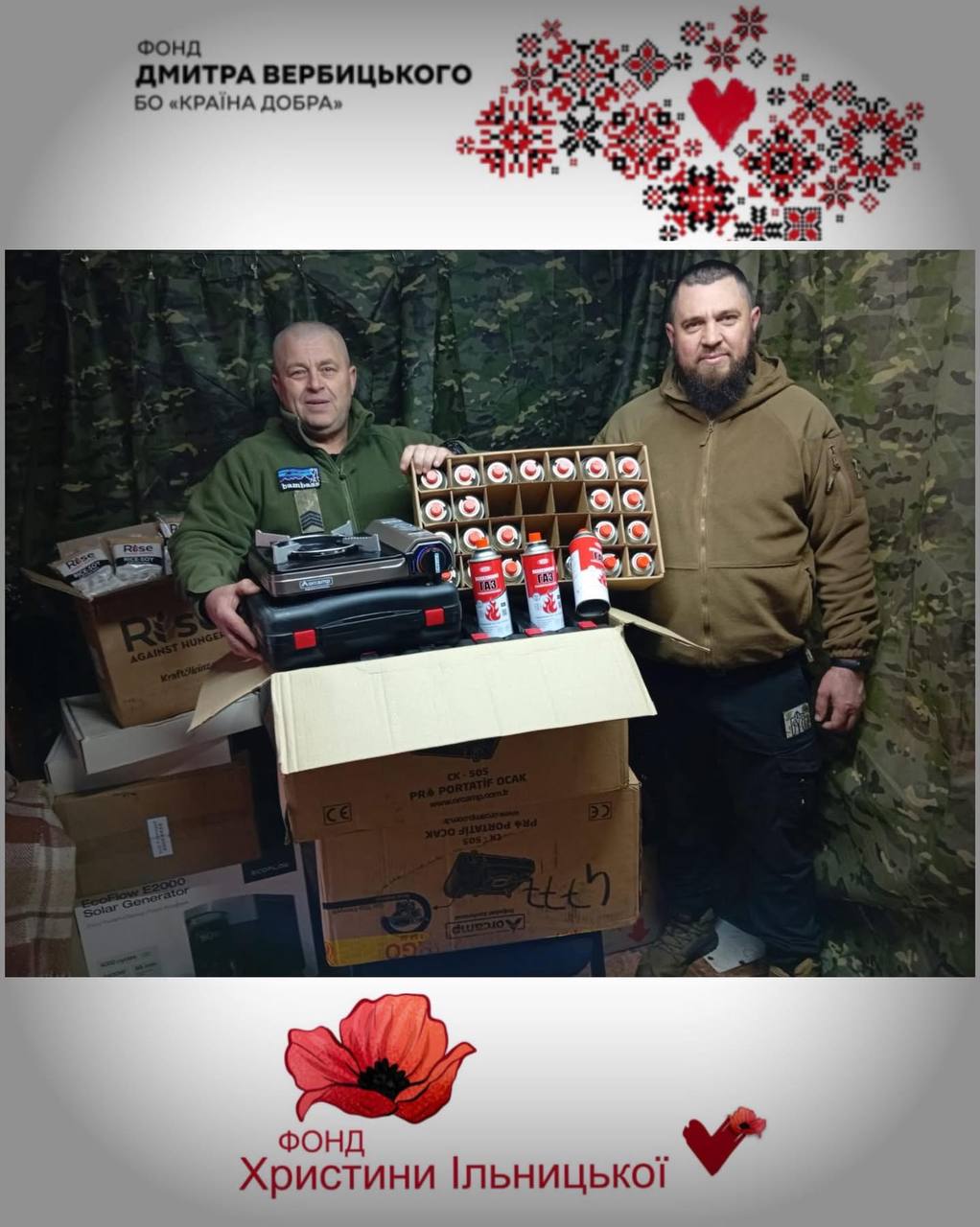 Фонд Дмитра Вербицького «Країна добра» та Фонд Христини Ільницької передали продовольчу допомогу та засоби для її готування для підрозділів ТРО, які виконують завдання на лінії фронту.