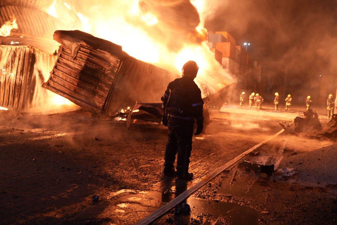 У портовій зоні загорілися контейнери та чотири легкові автомобілі, пошкоджено два ангари.