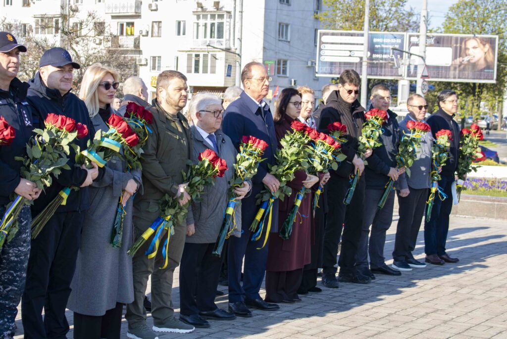 З нагоди пам’ятної дати керівництво міста та області, представники Збройних Сил, правоохоронних органів та містяни прийняли участь в урочистій церемонії покладання квітів до стели «Крила Перемоги» на площі Десятого квітня.