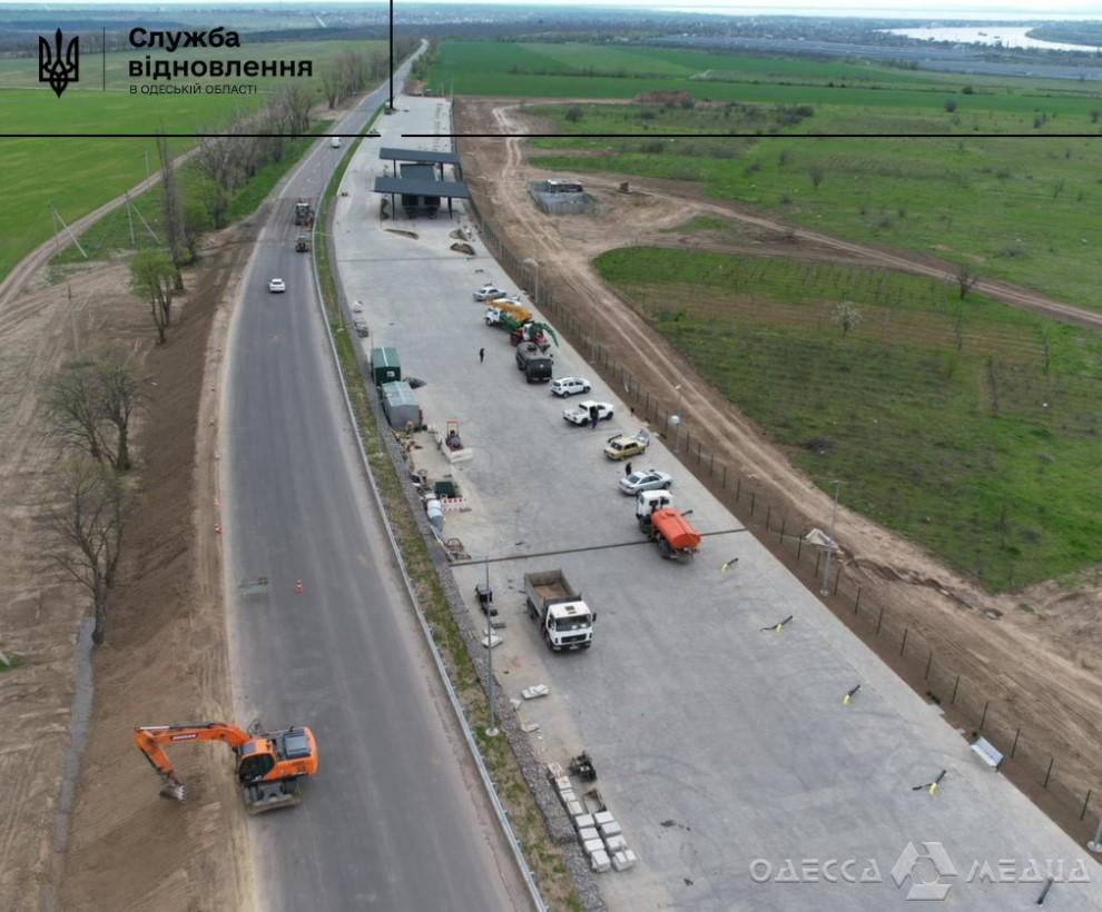 Наразі вже завершені роботи з планування основи дорожнього покриття, роботи з монтажу каркасів будівель (колон, балок, ригелів), влаштована плитка, та система фільтрації стічних вод, укріплено укоси земляного полотна монолітними бетонними плитами.
