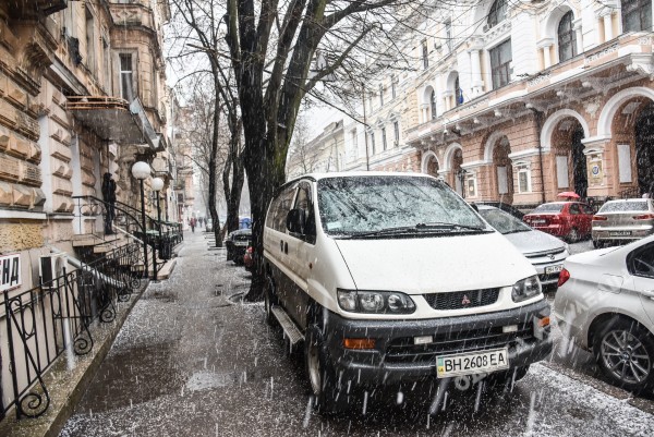 Как сообщили ИА «Одесса-медиа» очевидцы неожиданного для апреля погодного явления, сначала около 15:30 засверкала молния, затем посыпались крупинки града диаметром до сантиметра.